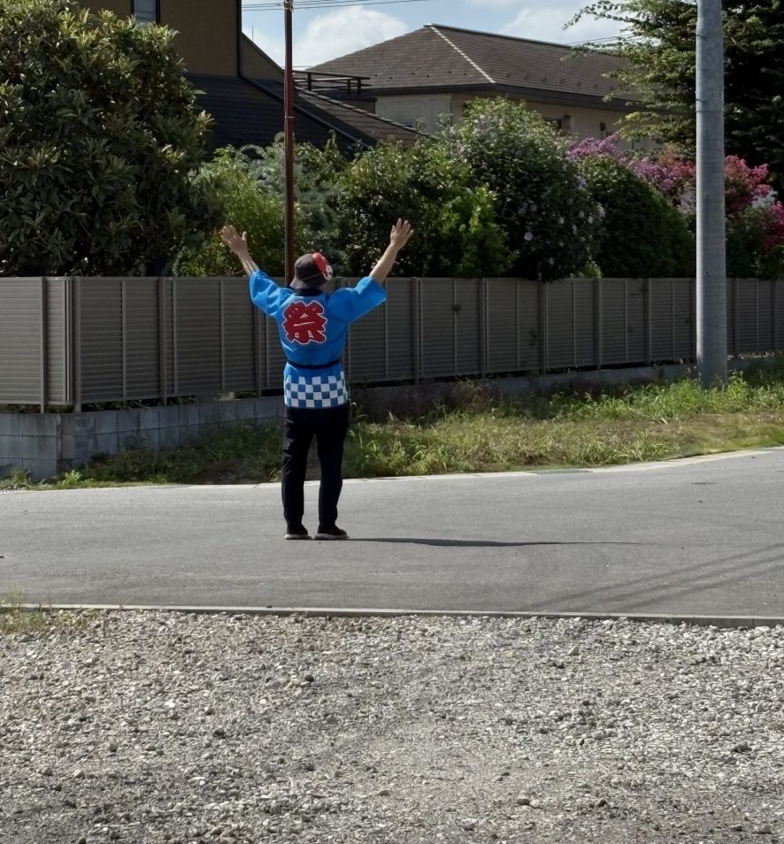 駐車場では元気いっぱいに男性スタッフが誘導いたしました。太陽の下、お疲れさま~!
